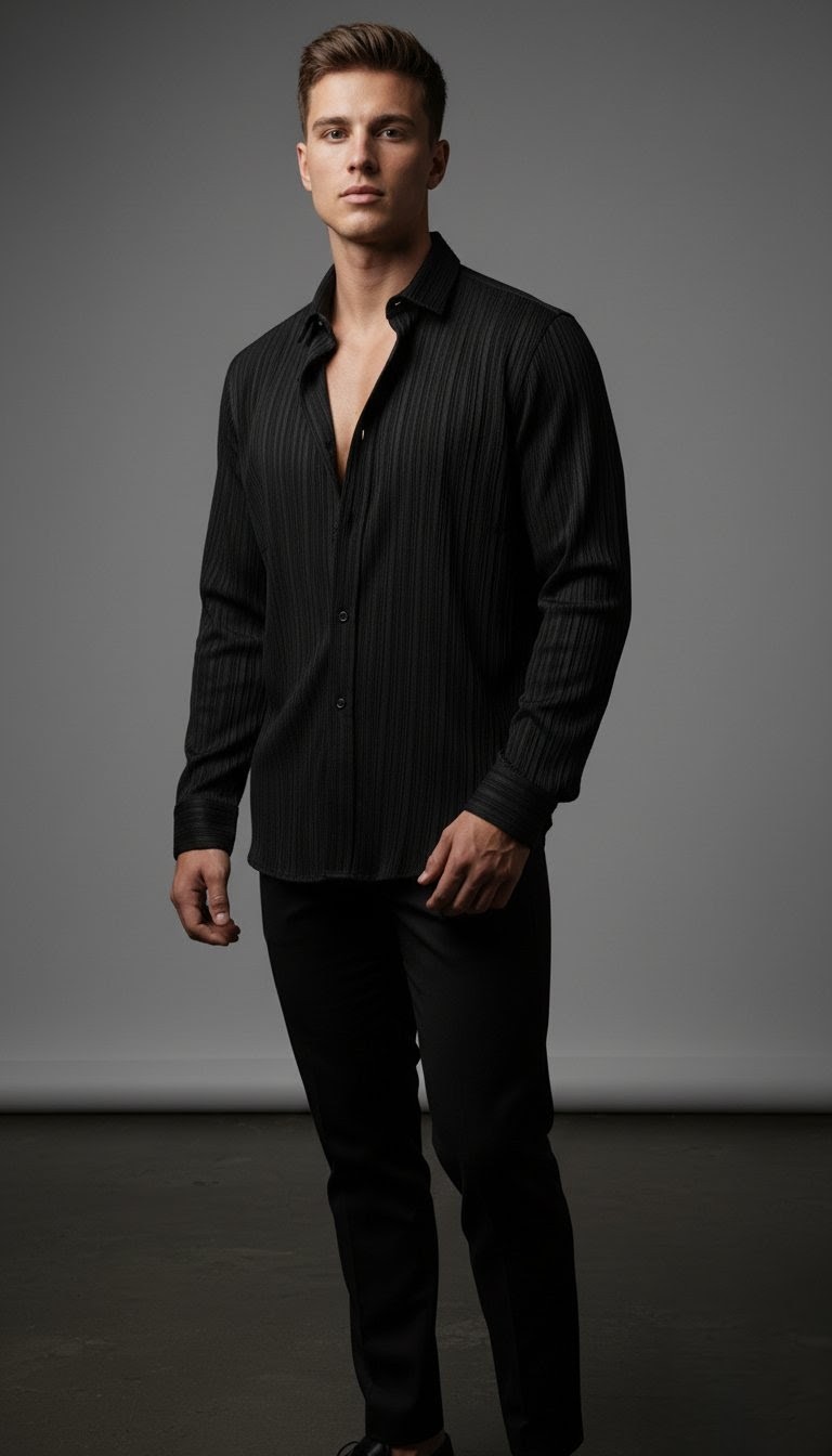 CAMISA LINO CEY MANGA LARGA CUELLO AMERICANO TEJIDO RAYAS