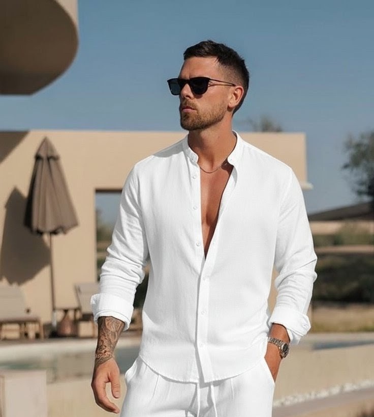 👔 Camisa de Lino Manga Larga | El Toque Distinguido del Cuello Mao