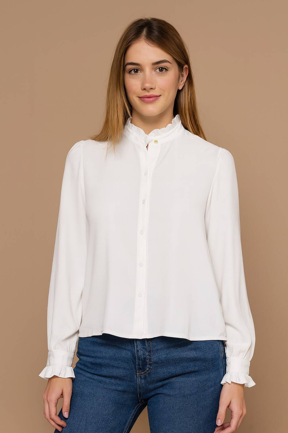 CAMISA SEDA CON BOLADOS EN CUELLO Y PUÑOS DAMA
